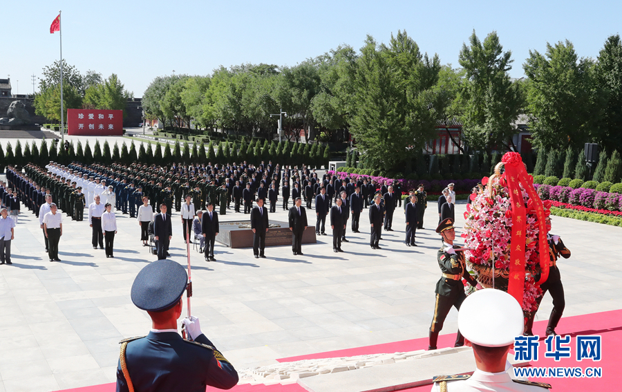 銘記歷史緬懷先烈,珍愛和平開創(chuàng)未來。9月3日上午,紀(jì)念中國人民抗日戰(zhàn)爭暨世界反法西斯戰(zhàn)爭勝利75周年向抗戰(zhàn)烈士敬獻(xiàn)花籃儀式在中國人民抗日戰(zhàn)爭紀(jì)念館舉行。黨和國家領(lǐng)導(dǎo)人習(xí)近平、李克強(qiáng)、栗戰(zhàn)書、汪洋、王滬寧、趙樂際、韓正、王岐山,同各界代表一起出席儀式。
