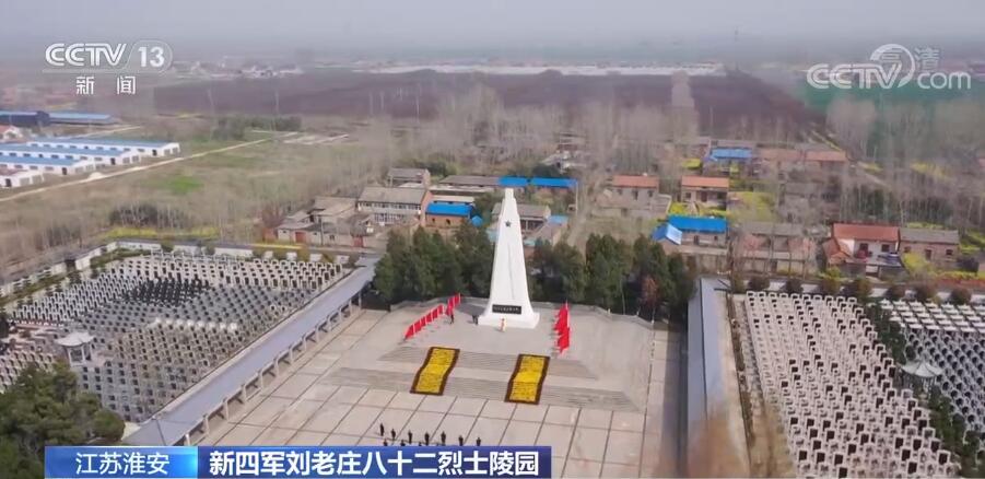現(xiàn)在我們看到的是位于江蘇淮安的劉老莊八十二烈士陵園。1943年春,侵華日軍對蘇北抗日根據(jù)地進(jìn)行掃蕩。新四軍三師七旅十九團(tuán)二營四連的82名官兵為了掩護(hù)群眾和當(dāng)?shù)貦C(jī)關(guān)安全轉(zhuǎn)移,在劉老莊和一千余日寇進(jìn)行殊死血戰(zhàn),斃敵170多人,終因寡不敵眾全部壯烈犧牲。抗戰(zhàn)勝利后,這支英雄的連隊(duì)被命名為“劉老莊連”。