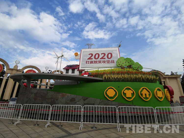 圖為曾在慶祝中華人民共和國成立70周年大會群眾游行方陣中亮相的脫貧攻堅彩車,側(cè)面的黃色圖標(biāo)所代表的就是兩不愁、三保障 攝影:楊月云