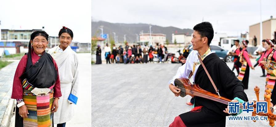 拼版照片:左圖為西藏日喀則市拉孜縣查務(wù)鄉(xiāng)明瑪村村民倉(cāng)瓊(左)和兒子群培次仁;右圖為拉孜縣民間藝術(shù)團(tuán)在明瑪村易地搬遷點(diǎn)為村民表演。明瑪村舊村交通不便,資源匱乏,自然環(huán)境惡劣,發(fā)展和脫貧受到制約。2016年,當(dāng)?shù)卣?jīng)多次規(guī)劃研究,在征求村民意見(jiàn)后,確定將明瑪村整村搬遷。2016年10月,倉(cāng)瓊和家人搬遷到了明瑪村新村。新村交通便利,文化休閑廣場(chǎng)、活動(dòng)室、學(xué)校等基礎(chǔ)設(shè)施完善。倉(cāng)瓊和家人商量后,在新村開(kāi)了一家小商店,一年有1萬(wàn)多元的收入,再加上村里養(yǎng)殖專業(yè)合作社的分紅,倉(cāng)瓊一家的日子越來(lái)越好(8月2日攝)。 新華社記者 詹彥 攝