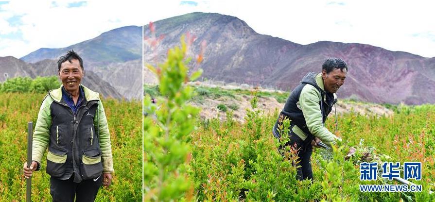 拼版照片:左圖為西藏昌都市芒康縣納西民族鄉(xiāng)加達(dá)村村民土登曲培;右圖為土登曲培在芒康縣納西民族鄉(xiāng)三江農(nóng)民專業(yè)合作社的苗圃里忙碌。幾年前,土登曲培來(lái)到三江農(nóng)民專業(yè)合作社打工,負(fù)責(zé)種樹(shù)和喂牛,每月有3000多元的收入(5月4日攝)。 新華社記者 詹彥 攝