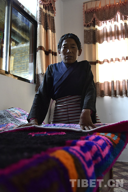 學會了縫紉制衣,次仁宗巴也漸漸摸透了氆氌、卡墊編織的竅門。為了獲得編織氆氌和卡墊的羊毛線,腿腳不便的次仁宗巴帶著自家核桃樹結(jié)的核桃,前往措美縣與當?shù)啬撩窠粨Q羊毛線。羊毛線的品質(zhì)好,自己又肯鉆研,次仁宗巴自制的氆氌、卡墊也受到大家的歡迎,一年能賣上千元。