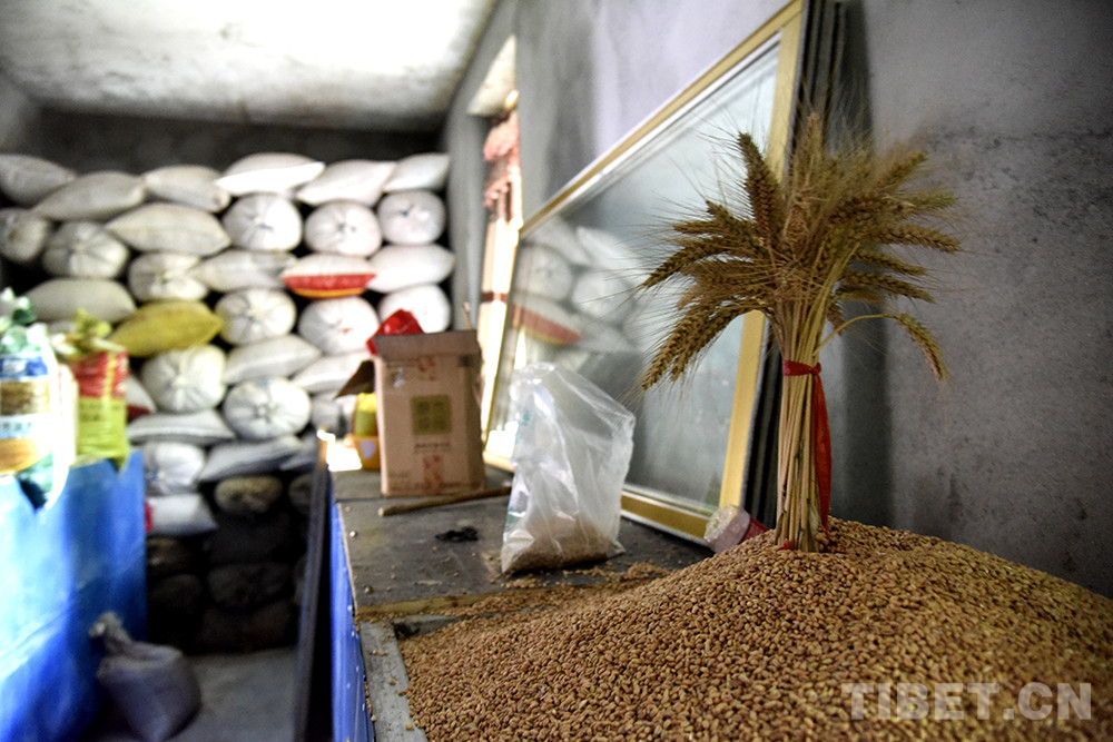 2007年,家里蓋了新房子。520平方米、19間的新房里,客廳、臥室、廚房被次仁宗巴打理得一塵不染,糧食儲藏間里,地里的收獲盡數(shù)歸倉。