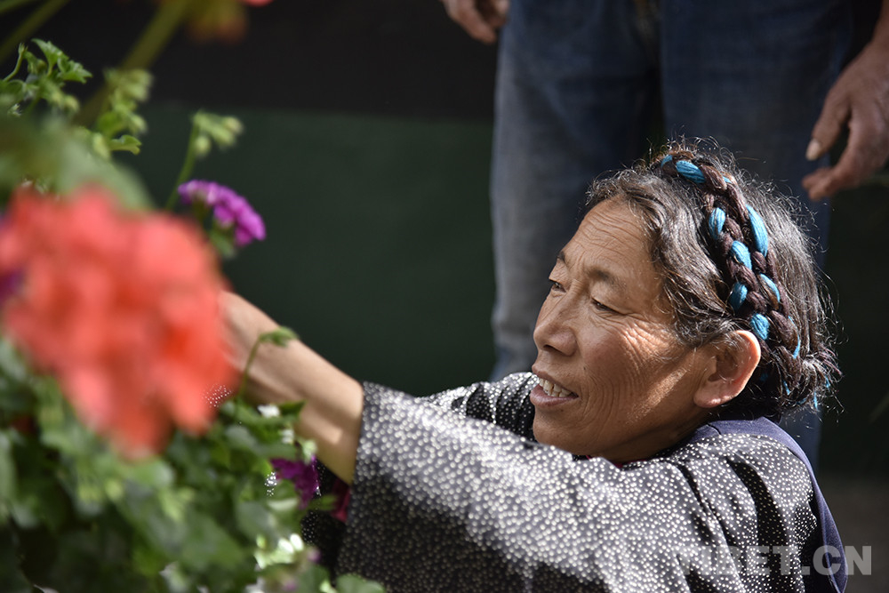 中國西藏網(wǎng)訊 水泥硬化的院子里,次仁宗巴看到前方地面有片樹葉。她趕緊彎腰拾撿,丟到一旁,繁花似錦的小院重歸干凈整潔。