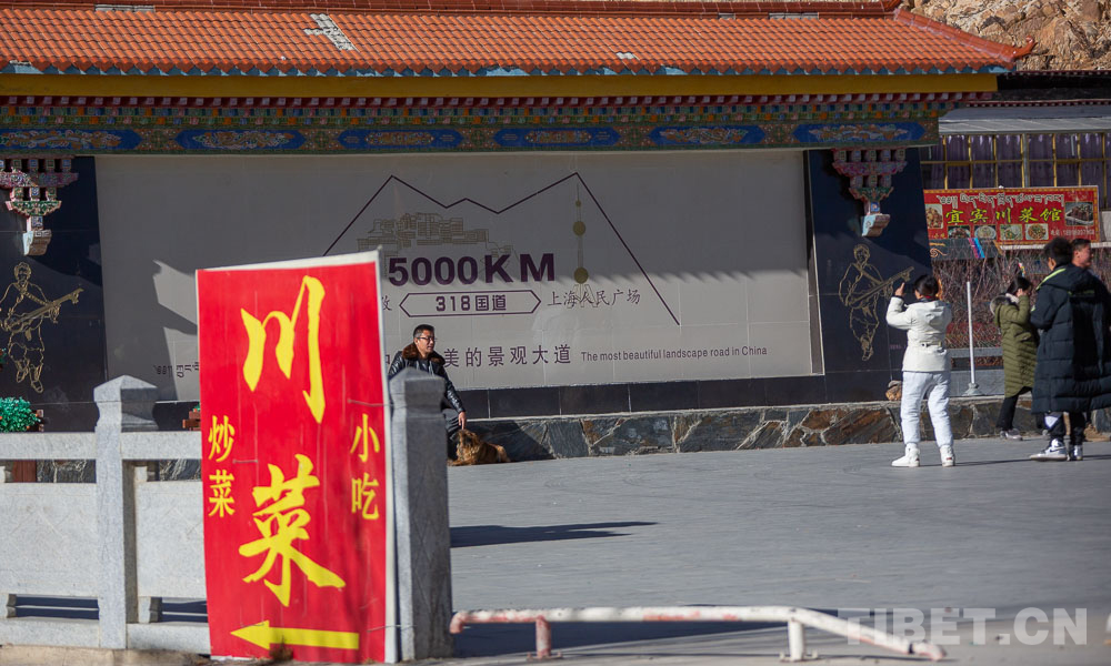 圖為“318國道5000KM里程碑”前指示餐館位置的指示牌 攝影:趙耀