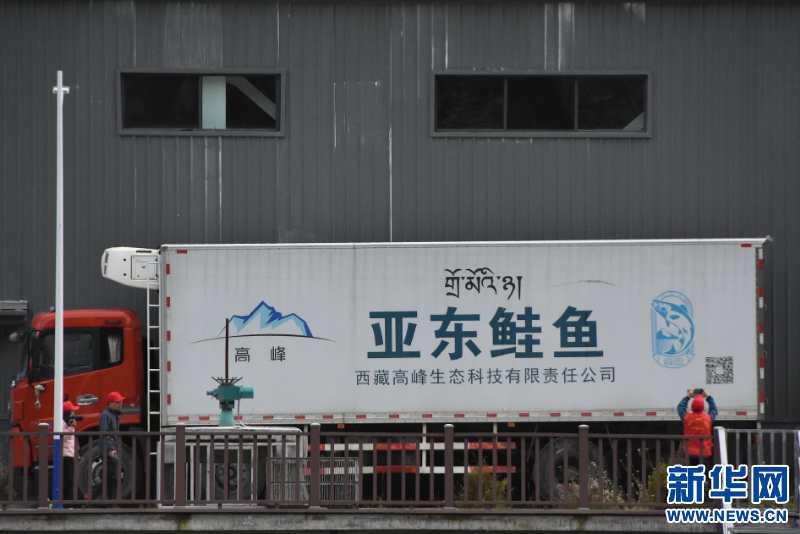 9月13日拍攝的帶有亞東鮭魚標識的卡車。新華網(wǎng) 張宸 攝