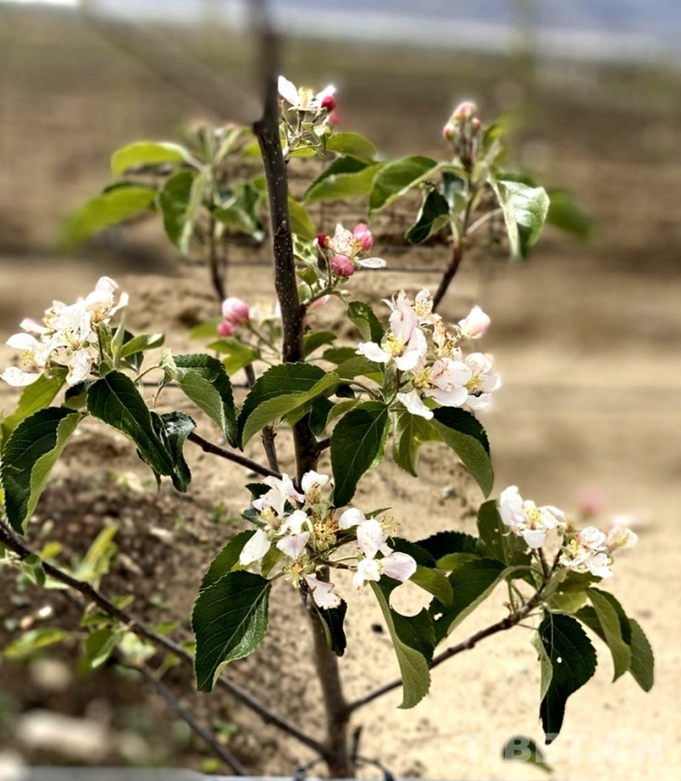 圖為西藏自治區(qū)山南市貢嘎縣昌果鄉(xiāng)團(tuán)結(jié)新村矮化蘋果基地種植的矮化蘋果已開花 圖片由西藏自治區(qū)山南市貢嘎縣昌果鄉(xiāng)團(tuán)結(jié)新村提供