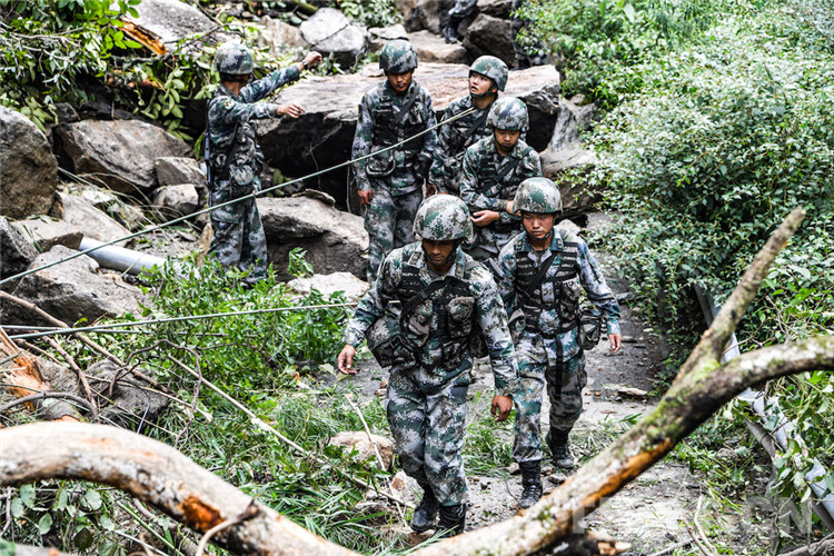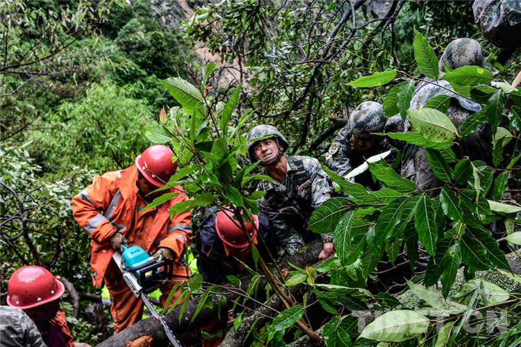 圖為巴桑和戰(zhàn)友們通過(guò)塌方亂石堆 攝影:徐治國(guó)