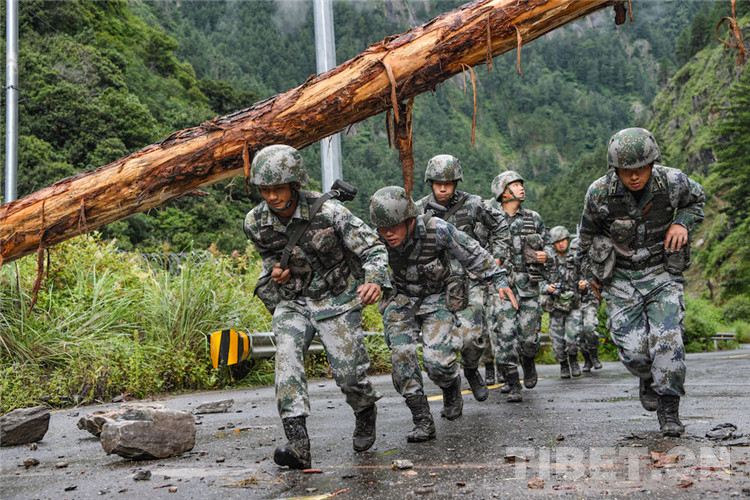 “山體滑坡帶下來(lái)的亂石和粗大的樹干擋住了去路,塌方面積不大,現(xiàn)在挖掘機(jī)正在作業(yè),跟當(dāng)?shù)厝藛T溝通,他們說(shuō)預(yù)計(jì)下午能搶通?!?巴桑爬上塌方的亂石堆觀察后,跑回來(lái)跟帶隊(duì)的副營(yíng)長(zhǎng)張為鵬報(bào)告情況。