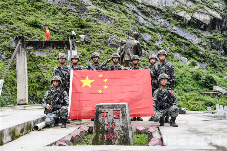 48號(hào)界樁就在熱索橋旁邊,一條山澗,分開兩國(guó),界樁上大寫的中國(guó)二字,被吉隆溝雨季頻繁的降水一次次沖刷著,巴桑和戰(zhàn)友們重新給“中國(guó)”描紅,并拔除界樁周圍的雜草。
