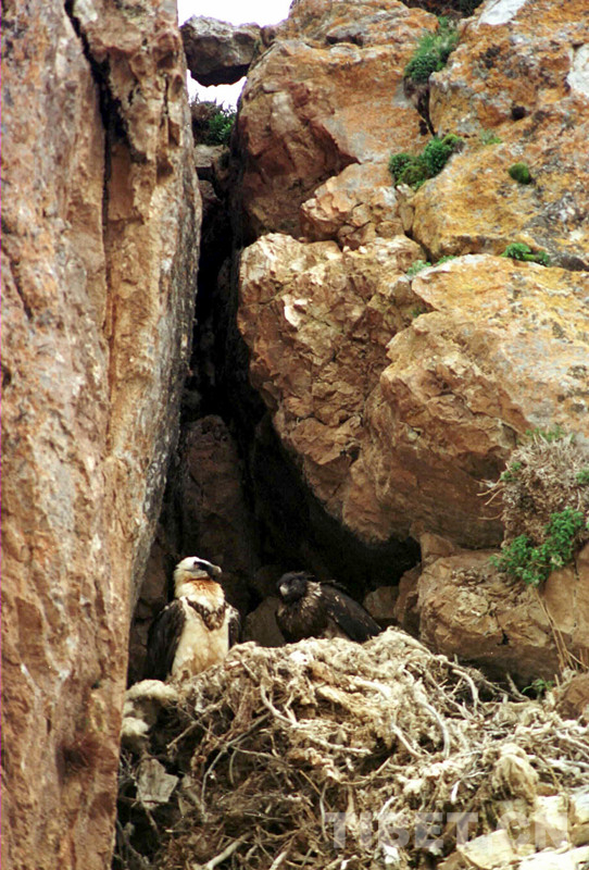 科考人員在科考中發(fā)現(xiàn),在扎西多半島西北角突兀懸崖峭壁上有一個(gè)很大的胡兀鷲雜草屋,只見(jiàn)雌鳥(niǎo)飛出飛進(jìn),在給4個(gè)月大小的雛鳥(niǎo)喂食。這種頭頂和后頸為白色、頭頂周?chē)幸蝗谟?,長(zhǎng)有胡須、腹部為褐色的胡兀鷲,體長(zhǎng)1米多。