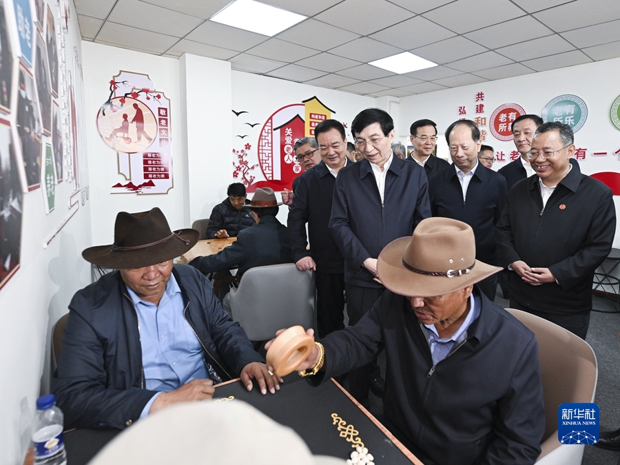 7月25日至27日,中共中央政治局常委、全國政協(xié)主席王滬寧在西藏調(diào)研。這是7月27日,王滬寧在拉薩城關區(qū)八廓街道魯固社區(qū)民族團結(jié)進步之家考察。新華社記者 燕雁 攝
