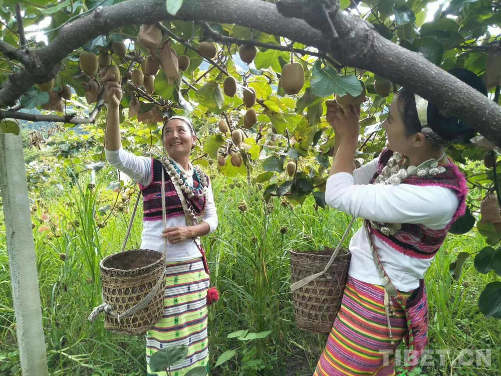 圖為下察隅鎮(zhèn)夏尼村僜人婦女正在采摘獼猴桃(資料圖)圖片由雄偉龍?zhí)峁?/p>