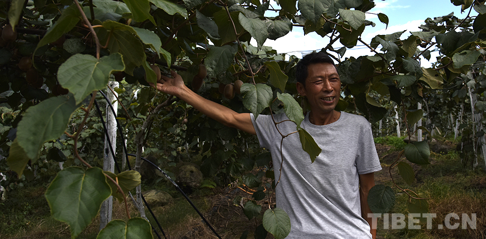 圖為下察隅鎮(zhèn)夏尼村獼猴桃種植基地的種獼猴桃的老鄭 攝影:王媛媛