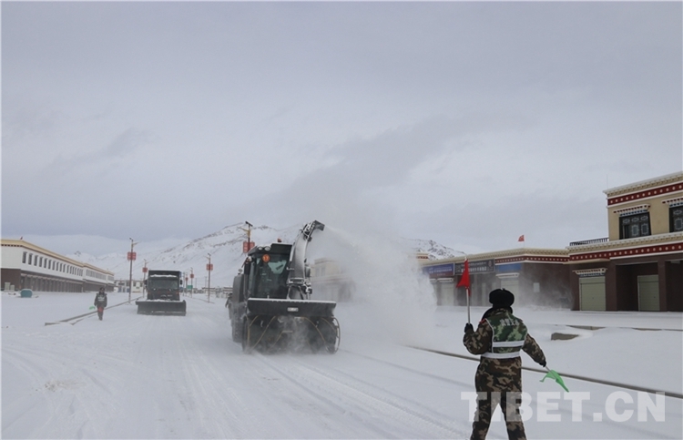 武警官兵緊急清理新藏線積雪路段