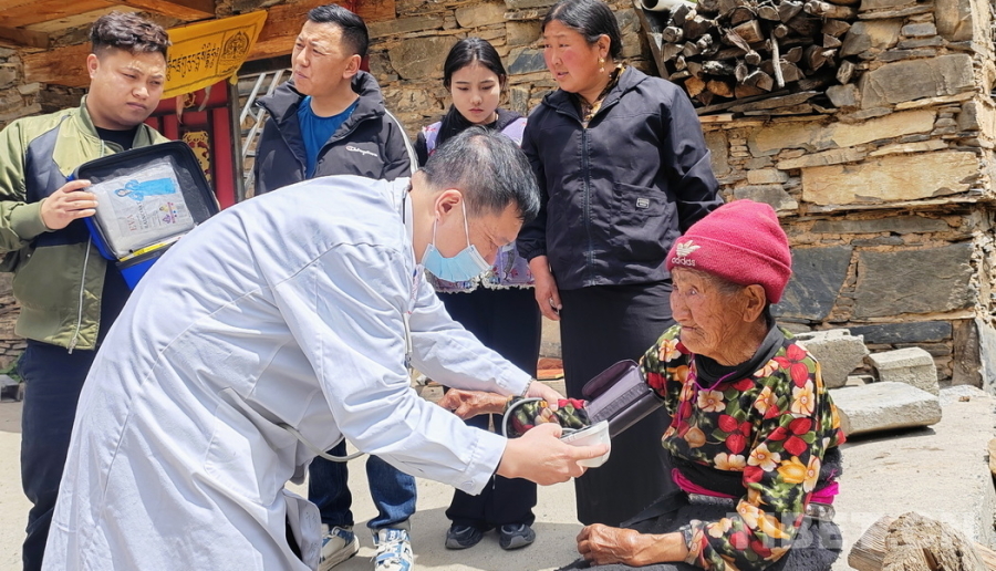 圖為 “同心·共鑄中國心”2025阿壩行大型健康公益綜合服務(wù)活動義診醫(yī)療專家在四川省阿壩州馬爾康市日部鄉(xiāng)入戶巡診,為行動不便的老人送醫(yī)送藥 攝影:張宏武