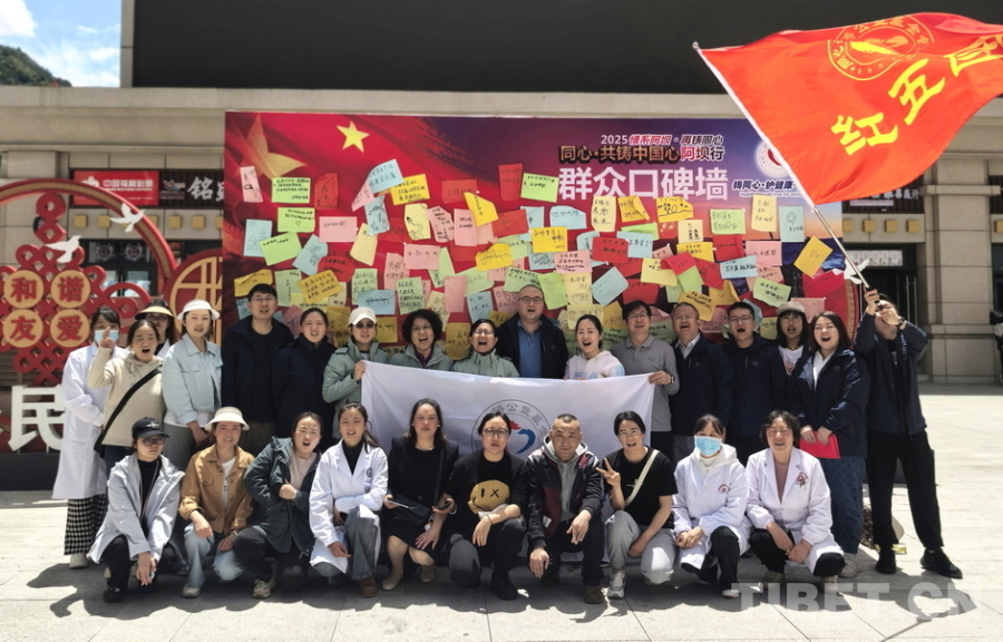 圖為“同心·共鑄中國心”2025阿壩行大型健康公益綜合服務(wù)活動四川省阿壩州首府馬爾康市義診點的醫(yī)療專家們義診結(jié)束后在群眾口碑墻前留影 攝影:吉文革