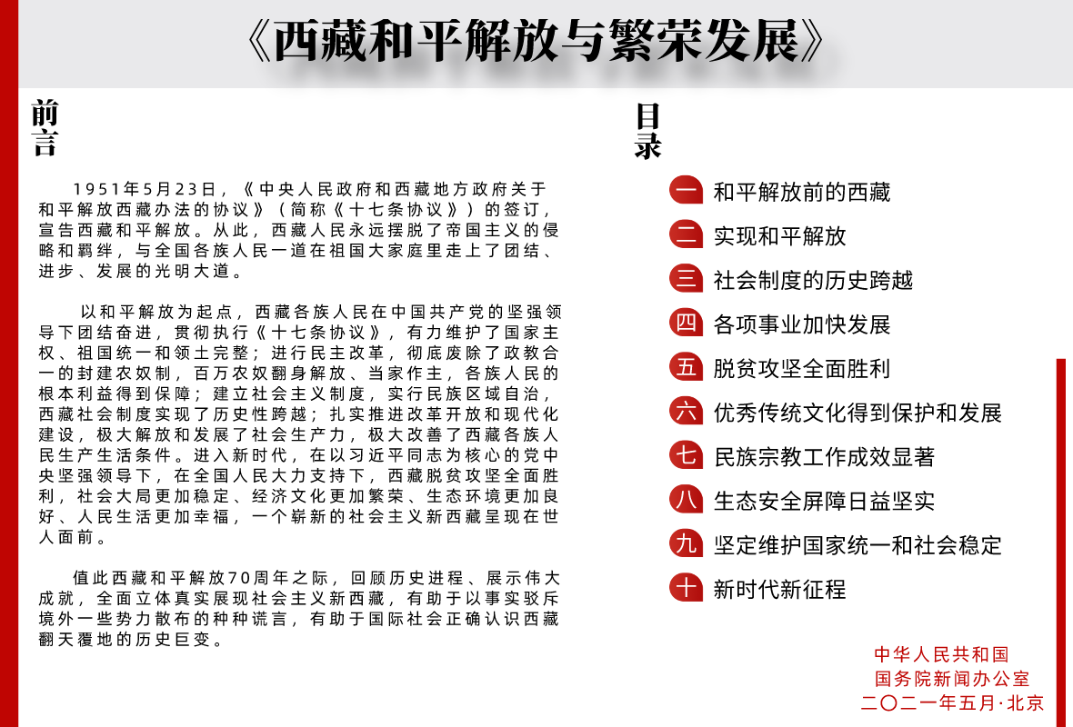 國務院新聞辦發(fā)表《西藏和平解放與繁榮發(fā)展》白皮書