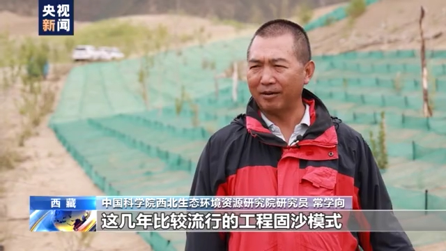 中國科學(xué)院西北生態(tài)環(huán)境資源研究院研究員 常學(xué)向:這幾年比較流行的工程固沙模式,可以大批量地、非??旖莸貋韺?shí)施工程,再通過生物措施來把流沙固定下來。好多品種,它治沙效果非常好,長勢也非常旺。但是到了青藏高原它不見得能適應(yīng)這個(gè)青藏高原的環(huán)境和氣候。哪些品種能適應(yīng)西藏的環(huán)境和氣候條件,這樣我們有選擇地來推廣到各個(gè)治沙區(qū)和治沙點(diǎn)。
