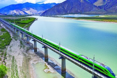 6月25日,全長435公里、設(shè)計時速160公里的拉林鐵路建成通車。圖為6月16日,試運行的復興號列車在拉林鐵路上行駛。新華社發(fā)