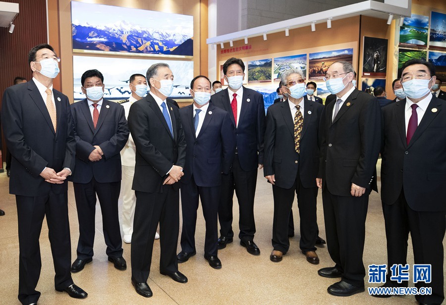 汪洋等走進(jìn)展廳,一邊仔細(xì)觀看展板,一邊認(rèn)真聽取講解?!妒邨l協(xié)議》簽字儀式歷史照片、實行民族區(qū)域自治制度的展板、對口援藏資金圖表、《西藏自治區(qū)民族團(tuán)結(jié)進(jìn)步模范區(qū)創(chuàng)建條例》圖片……一塊塊展板、一張張圖片圖表,生動展現(xiàn)了70年來西藏在黨的領(lǐng)導(dǎo)下取得的長足發(fā)展。汪洋不時駐足觀看,詳細(xì)詢問有關(guān)情況,對西藏近年來各項事業(yè)取得的成就予以充分肯定。