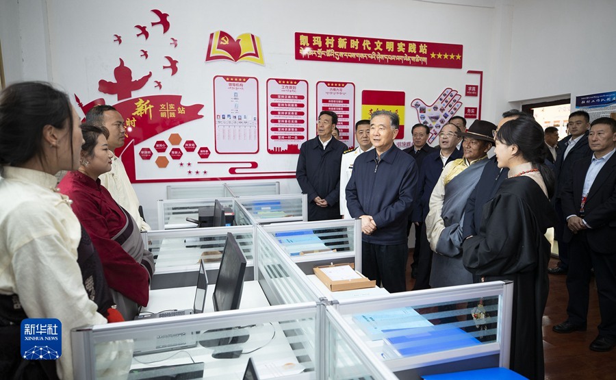 8月20日,帶著以習(xí)近平同志為核心的黨中央的親切關(guān)懷和全國(guó)人民的深情祝福,中共中央政治局常委、全國(guó)政協(xié)主席、中央代表團(tuán)團(tuán)長(zhǎng)汪洋率中央代表團(tuán)部分成員赴那曲市,看望慰問(wèn)那曲各族各界干部群眾。這是汪洋在那曲市色尼區(qū)羅瑪鎮(zhèn)凱瑪村視察基層黨組織建設(shè)工作情況。新華社記者 黃敬文 攝