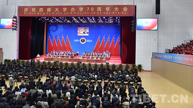 圖為慶祝西藏大學(xué)辦學(xué)70周年大會(huì)現(xiàn)場(chǎng)