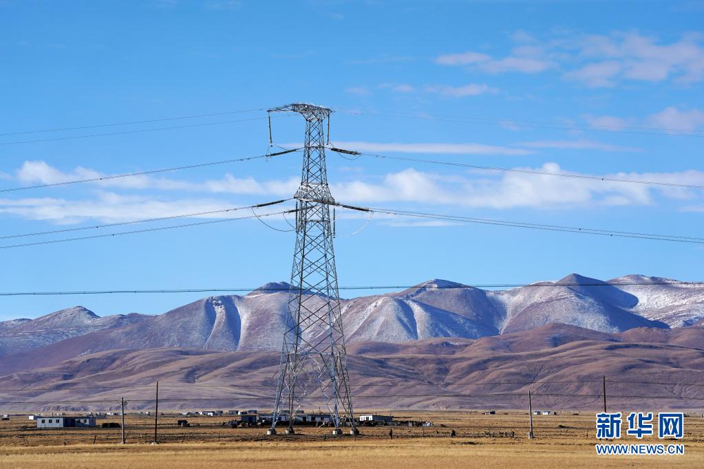 這是在西藏阿里地區(qū)普蘭縣拍攝的西藏阿里與藏中電網(wǎng)聯(lián)網(wǎng)工程輸電鐵塔(2020年11月29日攝)。新華社記者 詹彥 攝
