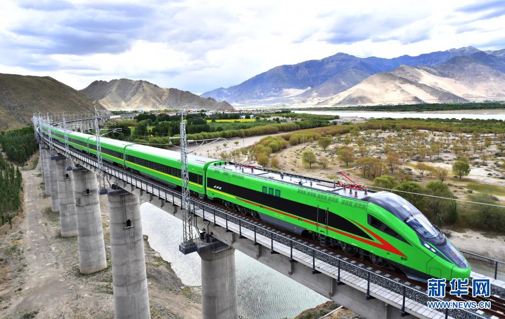 6月25日,全長435公里、設(shè)計時速160公里的拉林鐵路建成通車,西藏首條電氣化鐵路建成,同時復(fù)興號實現(xiàn)對31個省區(qū)市全覆蓋。這是試運行的復(fù)興號列車行駛在西藏山南市境內(nèi)(6月16日攝)。新華社記者 覺果 攝