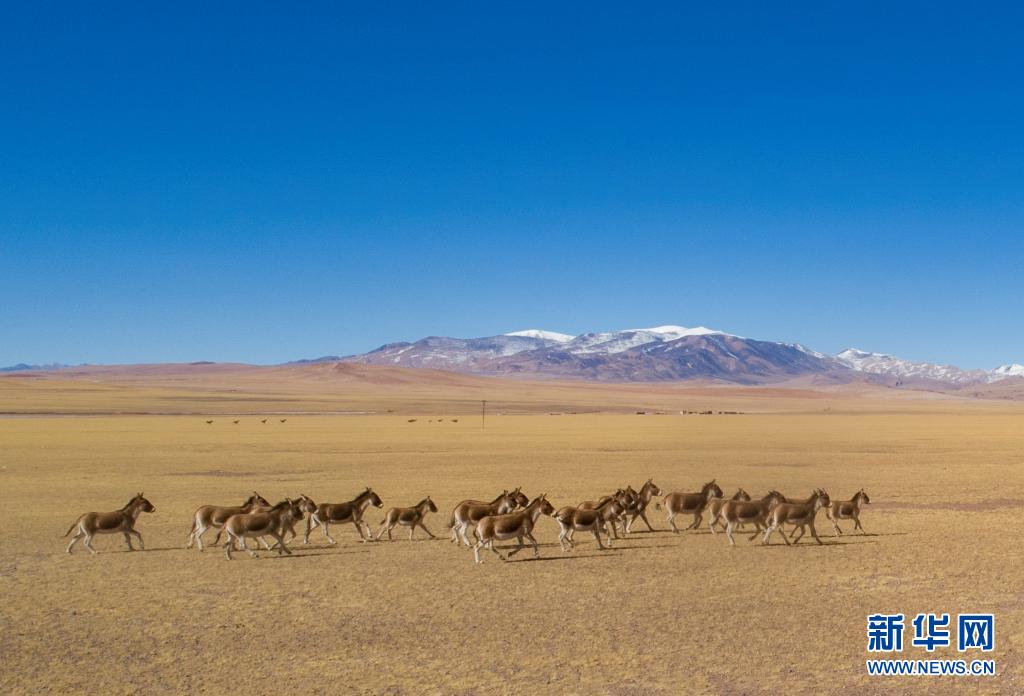 這是在西藏羌塘國家級自然保護(hù)區(qū)拍攝的藏野驢(無人機照片,2019年12月23日攝)。新華社記者 孫非 攝