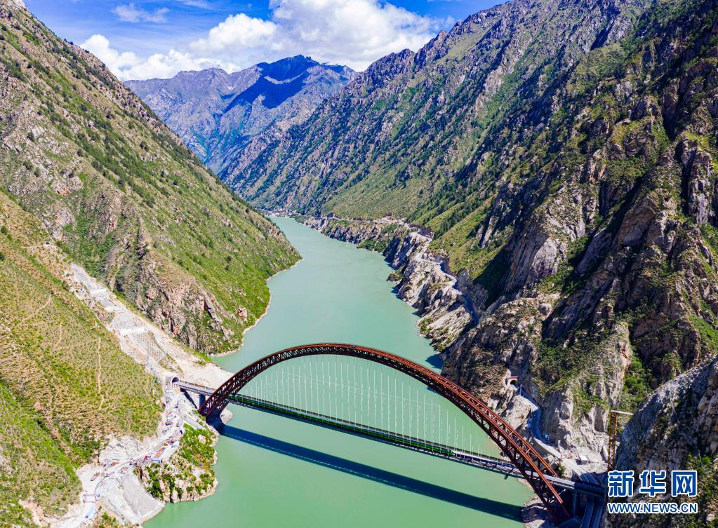 6月25日,全長435公里、設(shè)計時速160公里的拉林鐵路建成通車,西藏首條電氣化鐵路建成,同時復(fù)興號實現(xiàn)對31個省區(qū)市全覆蓋。這是試運行的復(fù)興號列車行駛在藏木特大橋(無人機照片,6月17日攝)。新華社記者 普布扎西 攝