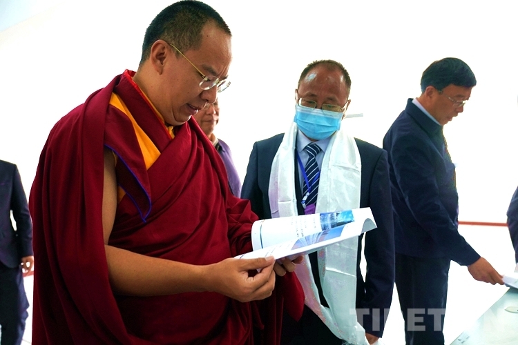 圖為班禪認真翻閱申扎縣城集中供暖熱廠有關(guān)資料 攝影:王淑