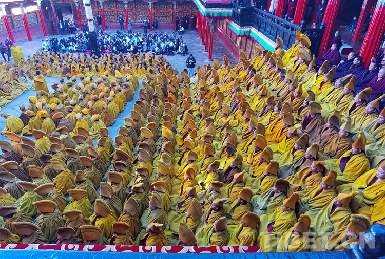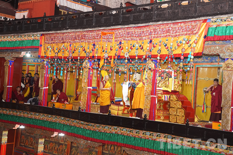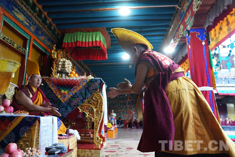經(jīng)過數(shù)日準備,26日下午,班禪于扎什倫布寺參加嘎欽學位立宗答辯。來自西藏自治區(qū)藏傳佛教各教派的堪布、經(jīng)師等高僧以及扎什倫布寺僧眾、信教群眾等800人共赴盛會、共享法喜。