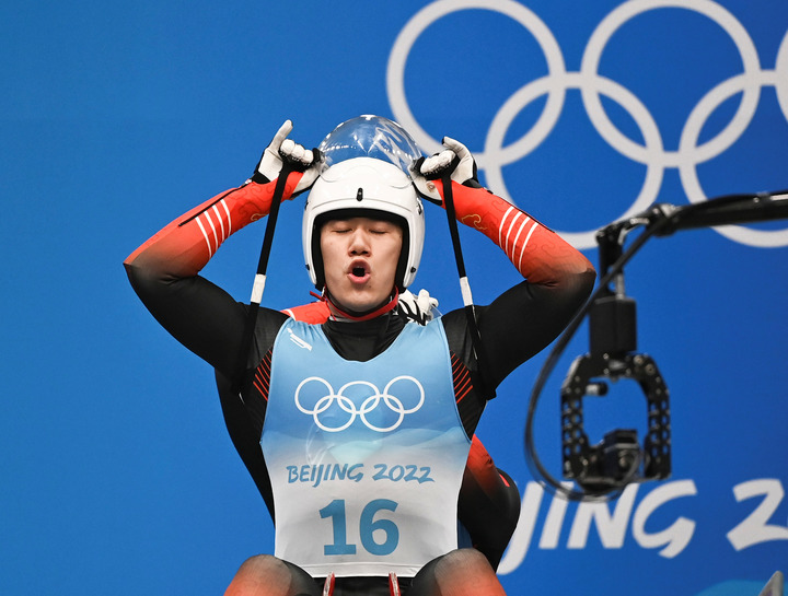 2月9日,中國選手黃葉波和彭俊越在北京2022年冬奧會雙人雪橇項目比賽中。新華社記者孫非攝