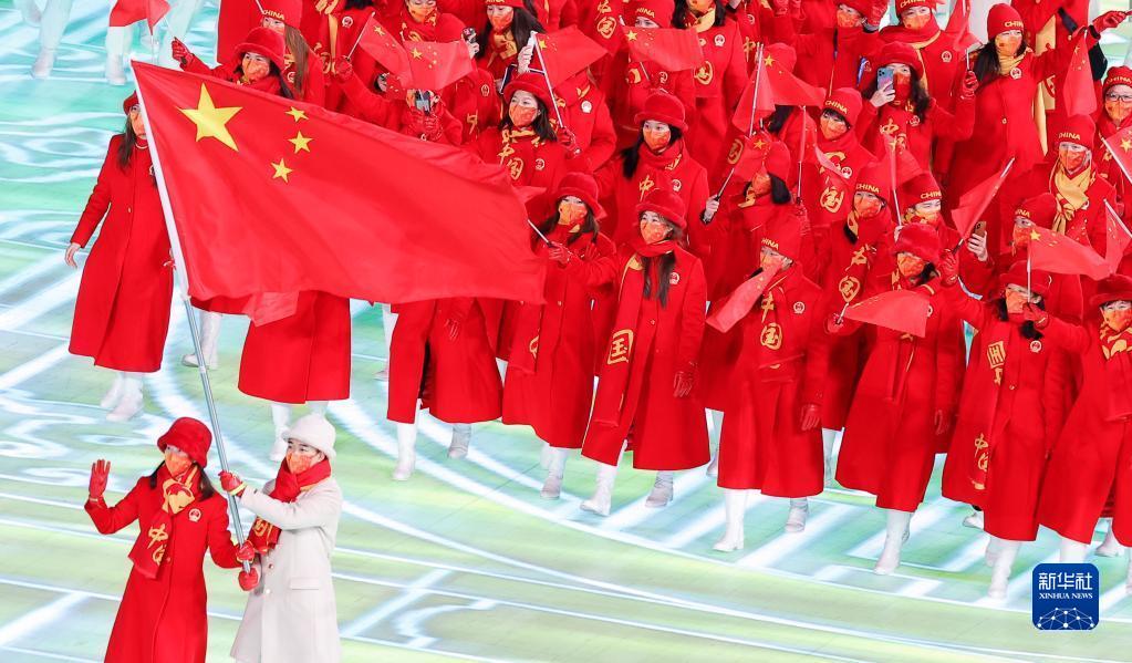 2月4日晚,第二十四屆冬季奧林匹克運(yùn)動會開幕式在北京國家體育場舉行。這是中國代表團(tuán)在開幕式上入場。新華社記者 徐子鑒 攝
