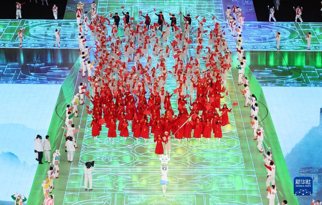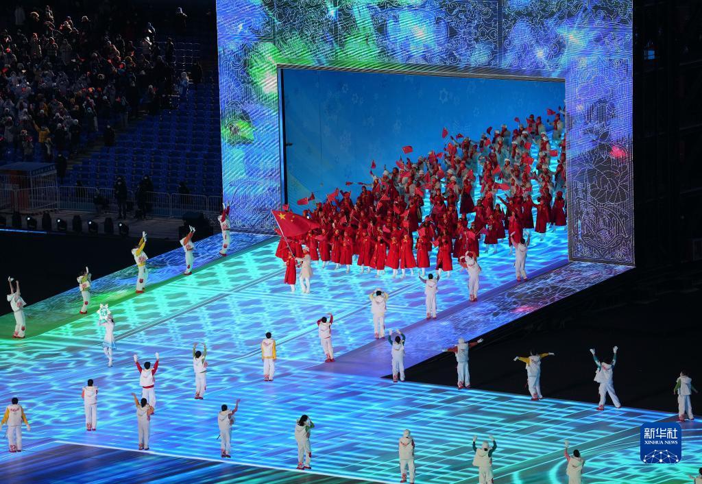 2月4日晚,第二十四屆冬季奧林匹克運(yùn)動會開幕式在北京國家體育場舉行。這是中國代表團(tuán)在開幕式上入場。新華社記者 王毓國 攝