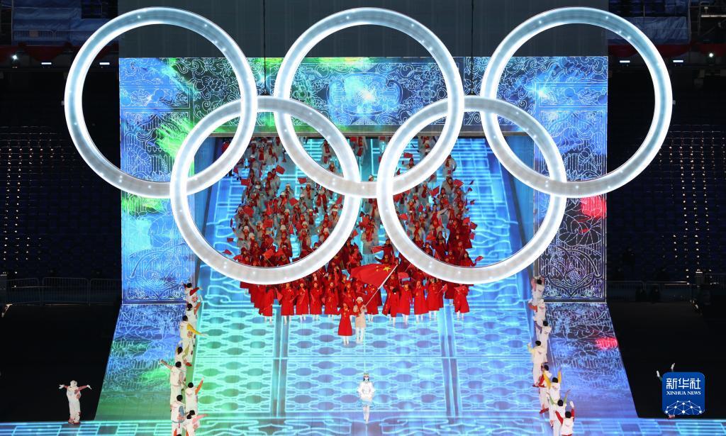 2月4日晚,第二十四屆冬季奧林匹克運(yùn)動會開幕式在北京國家體育場舉行。這是中國代表團(tuán)在開幕式上入場。新華社記者 武巍 攝