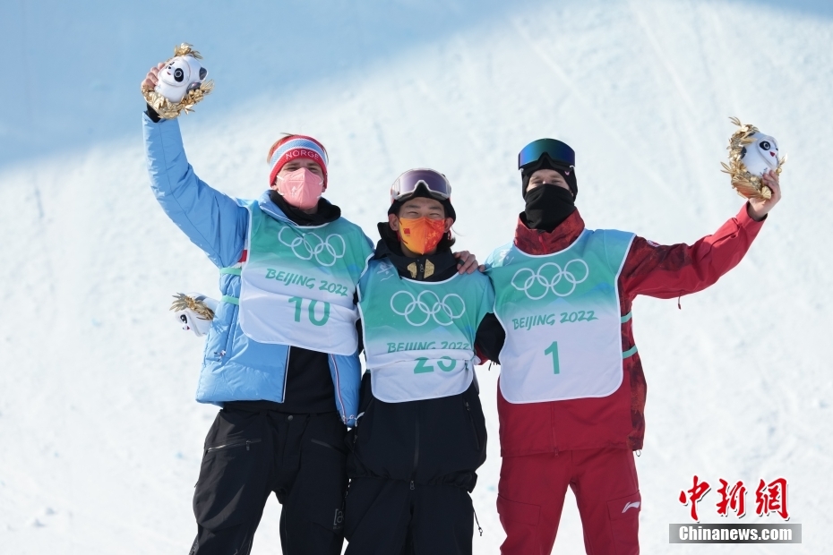 2月15日,北京2022年冬奧會單板滑雪男子大跳臺決賽在首鋼滑雪大跳臺舉行,中國選手蘇翊鳴獲得冠軍。 中新社記者 毛建軍 攝