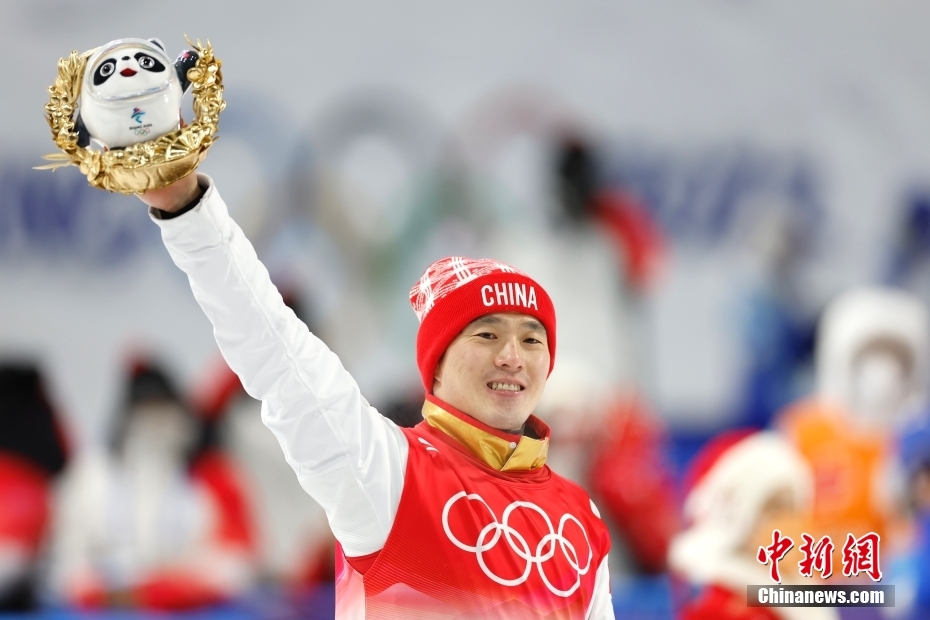 2月16日,冠軍中國(guó)選手齊廣璞在頒發(fā)紀(jì)念品儀式上。當(dāng)日,北京2022年冬奧會(huì)自由式滑雪男子空中技巧決賽在張家口賽區(qū)舉行,中國(guó)選手齊廣璞奪得冠軍。 中新社記者 富田 攝