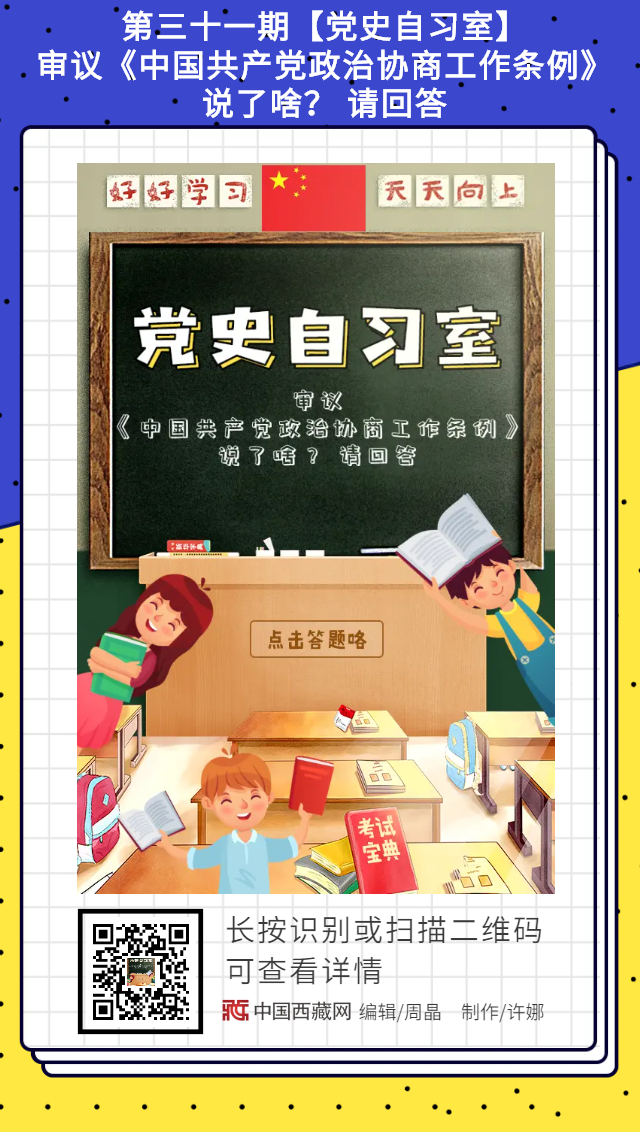第三十一期【黨史自習(xí)室】審議《中國共產(chǎn)黨政治協(xié)商工作條例》說了啥? 請回答