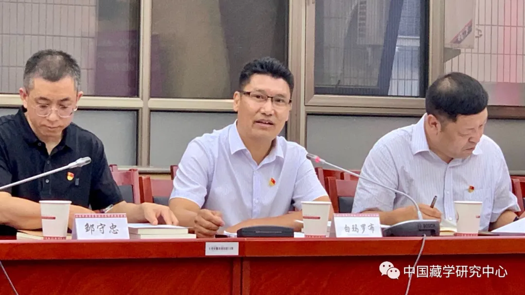 6月18日下午,中國藏學研究中心與西藏自治區(qū)在京掛職干部臨時黨支部舉行聯合主題黨日活動,學習貫徹習近平總書記在黨史學習教育動員大會上的重要講話精神,學習《西藏和平解放與繁榮發(fā)展》白皮書,并就加強合作交流,推動藏學研究更好為西藏長治久安和高質量發(fā)展服務,推進藏研中心建設國家涉藏高端智庫進行座談交流。藏研中心黨組成員、各科研業(yè)務部門負責人、科研業(yè)務辦公室全體人員和17位西藏自治區(qū)在京掛職干部參加活動。座談由西藏在京掛職干部臨時黨支部書記、水利部建設司副司長白瑪羅布主持,藏研中心黨組書記陳宗榮、總干事鄭堆出席活動并講話。