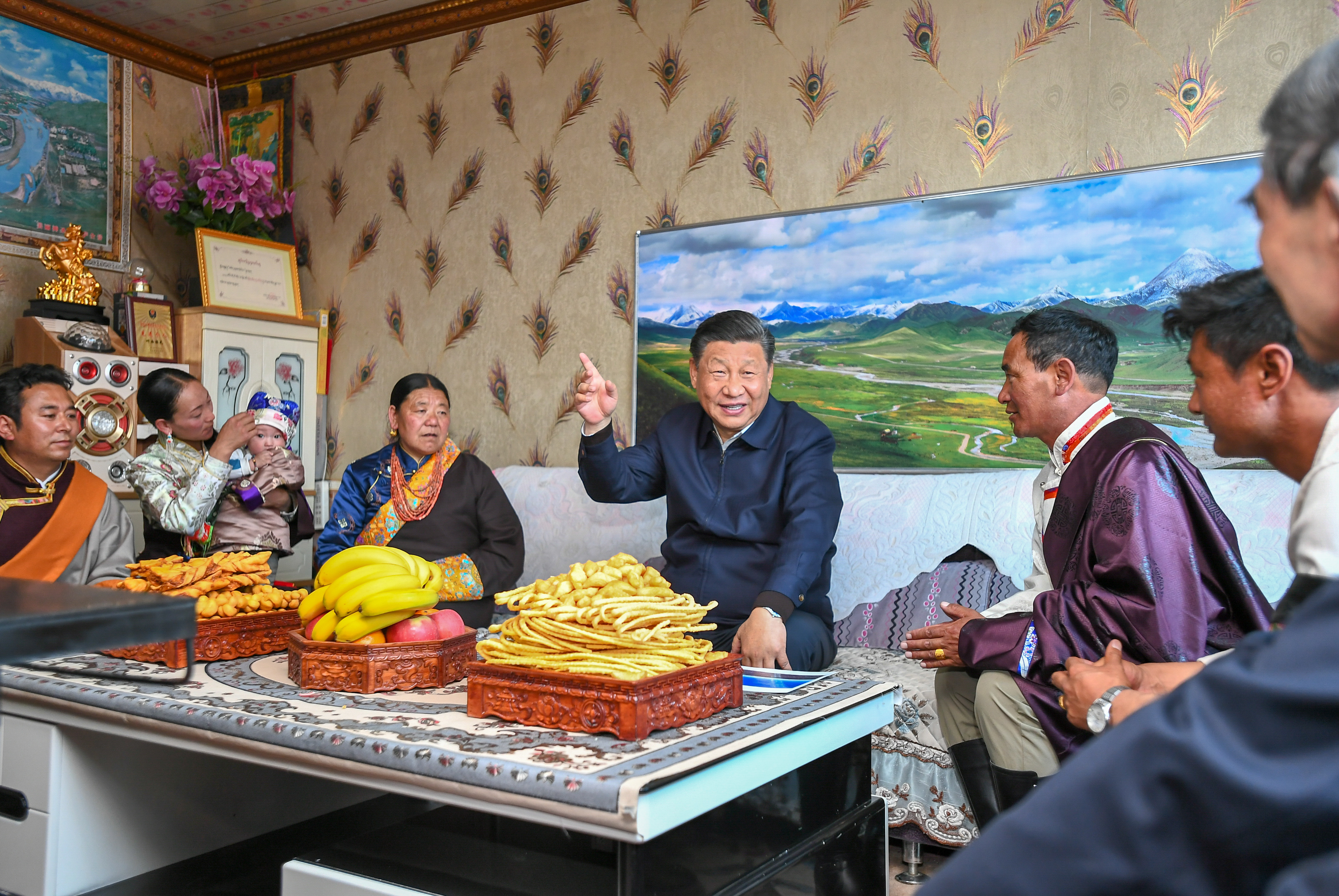 8日下午,習(xí)近平總書(shū)記來(lái)到海北藏族自治州剛察縣沙柳河鎮(zhèn)果洛藏貢麻村,走進(jìn)牧民索南才讓家中,看望慰問(wèn)藏族群眾。索南才讓說(shuō),牧民生活好,全靠黨的政策好,衷心感謝黨、衷心感謝總書(shū)記。習(xí)近平指出,我們黨成立一百年了,為什么老百姓衷心擁護(hù)中國(guó)共產(chǎn)黨?因?yàn)槲覀凕h始終全心全意為人民服務(wù)、為各民族謀幸福。我們一百年來(lái)取得的成績(jī),贏得了民心,在建設(shè)社會(huì)主義現(xiàn)代化國(guó)家新征程上,我們要走得更好。