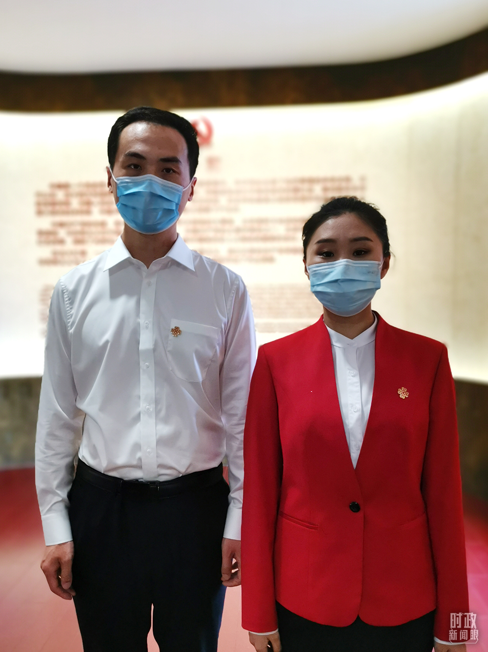 “光輝偉業(yè) 紅色序章——北大紅樓與中國共產(chǎn)黨早期北京革命活動主題展”講解員朱寧、謝尹楠。(總臺央視記者李曉周拍攝)