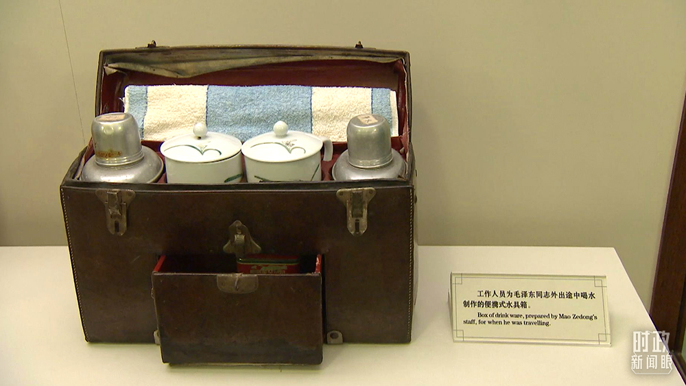 這是工作人員為毛澤東外出途中喝水制作的便攜式水具箱,現(xiàn)陳列在豐澤園毛澤東同志故居。(總臺央視記者石偉明拍攝)