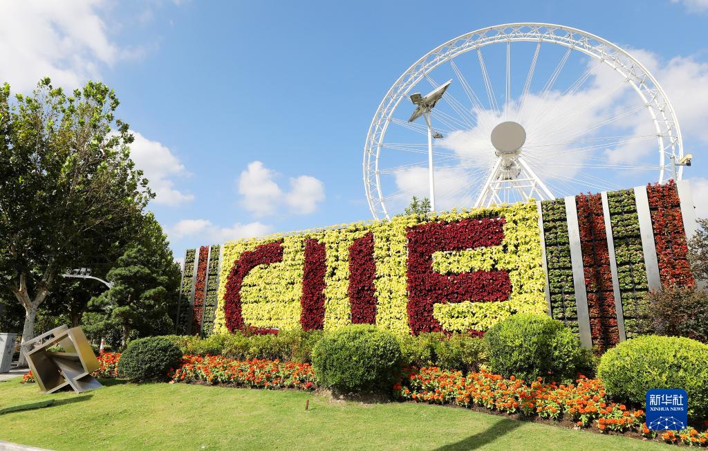 這是國家會展中心(上海)周邊的進博會主題綠化裝飾(10月5日攝)。新華社記者 方喆 攝