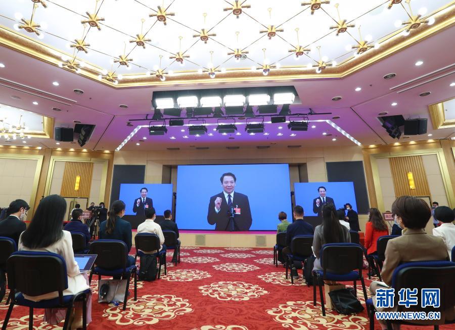 3月10日,全國(guó)政協(xié)十三屆四次會(huì)議第三場(chǎng)“委員通道”采訪活動(dòng)在北京人民大會(huì)堂新聞發(fā)布廳舉行。這是全國(guó)政協(xié)委員陳雨露通過(guò)網(wǎng)絡(luò)視頻方式接受媒體采訪。新華社記者 李賀 攝