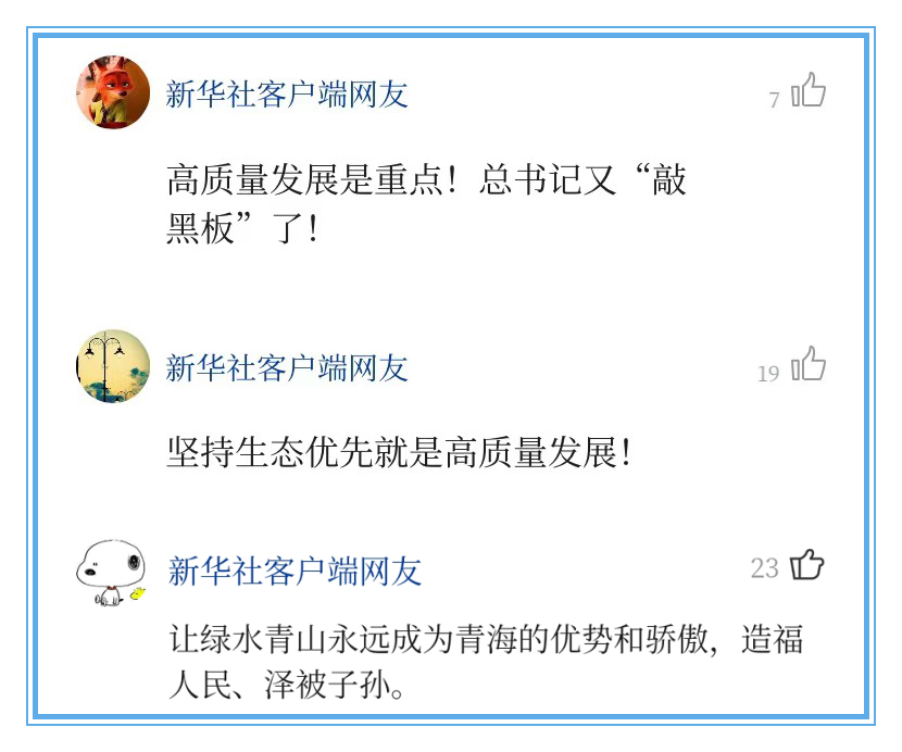 以“綠水青山就是金山銀山”引領(lǐng)綠色發(fā)展,以高品質(zhì)生活為落腳點(diǎn)推動(dòng)高質(zhì)量發(fā)展。習(xí)近平總書記的諄諄教誨,代表了廣大網(wǎng)友的心聲。