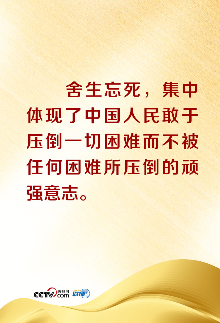 “在這場同嚴重疫情的殊死較量中,中國人民和中華民族以敢于斗爭、敢于勝利的大無畏氣概,鑄就了生命至上、舉國同心、舍生忘死、尊重科學(xué)、命運與共的偉大抗疫精神?!笨倳涍€在講話中特別概括、闡釋了偉大抗疫精神,并深刻指出,偉大抗疫精神,同中華民族長期形成的特質(zhì)稟賦和文化基因一脈相承,是愛國主義、集體主義、社會主義精神的傳承和發(fā)展,是中國精神的生動詮釋,豐富了民族精神和時代精神的內(nèi)涵。央視網(wǎng)《聯(lián)播+》欄目特對相關(guān)內(nèi)容進行梳理,與您共同在偉大精神中感受偉大的力量!
