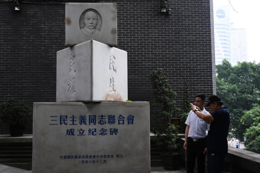 6月21日,媒體記者在位于重慶的中國(guó)民主黨派歷史陳列館參觀“三民主義同志聯(lián)合會(huì)成立紀(jì)念碑”。