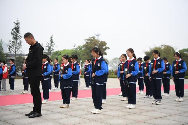 3月30日,長沙市長郡天心實驗學校師生在湖南革命陵園烈士紀念碑前緬懷英烈。